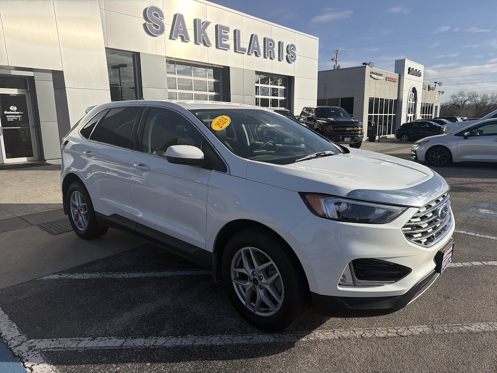 Certified. AWD, 110V/150W AC Power Outlet, Alloy wheels, Class II Trailer Tow Package, Convenience Package, Fog Lamps w/Iconic Silver Bezel, Perimeter Alarm, Power Liftgate, Remote keyless entry, Remote Start System, Universal Garage Door Opener (UGDO), Wireless Charging Pad. Odometer is 15977 miles below market average! 21/28 City/Highway MPG Star White Metallic Tri-Coat 2024 Ford Edge SEL AWD 8-Speed Automatic EcoBoost 2.0L I4 GTDi DOHC Turbocharged VCT Ford Gold Certified Details: