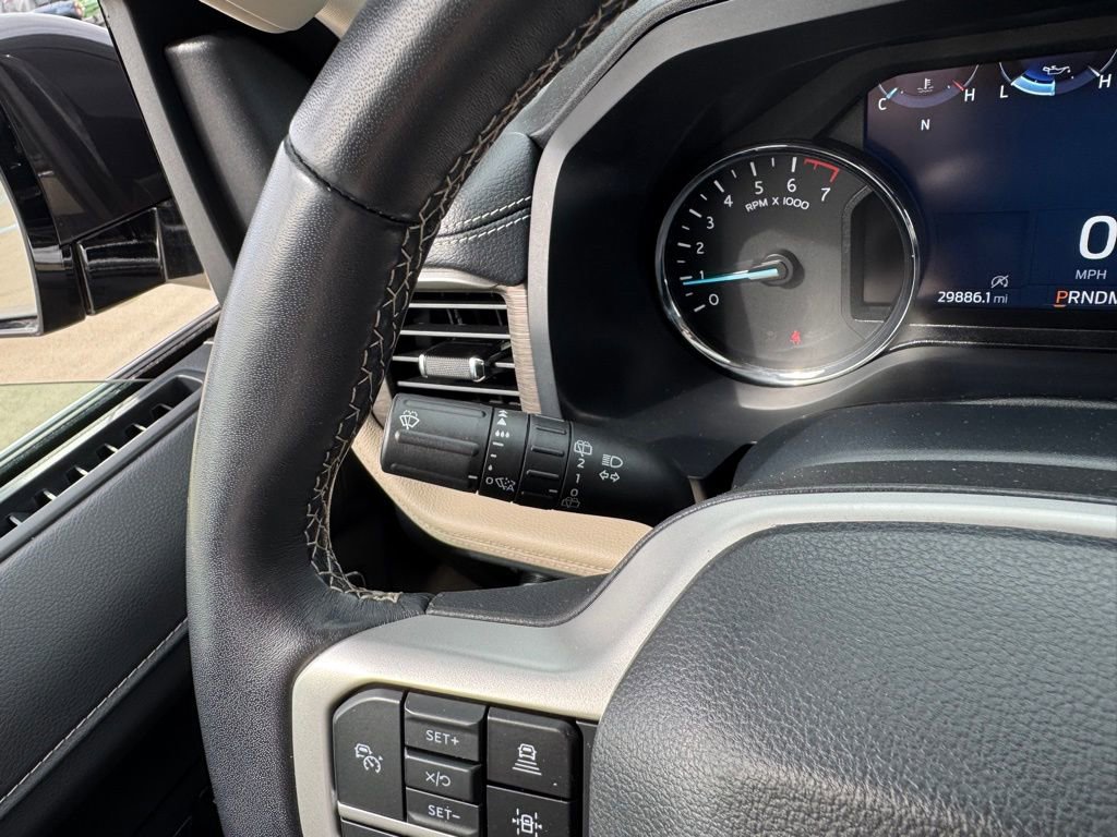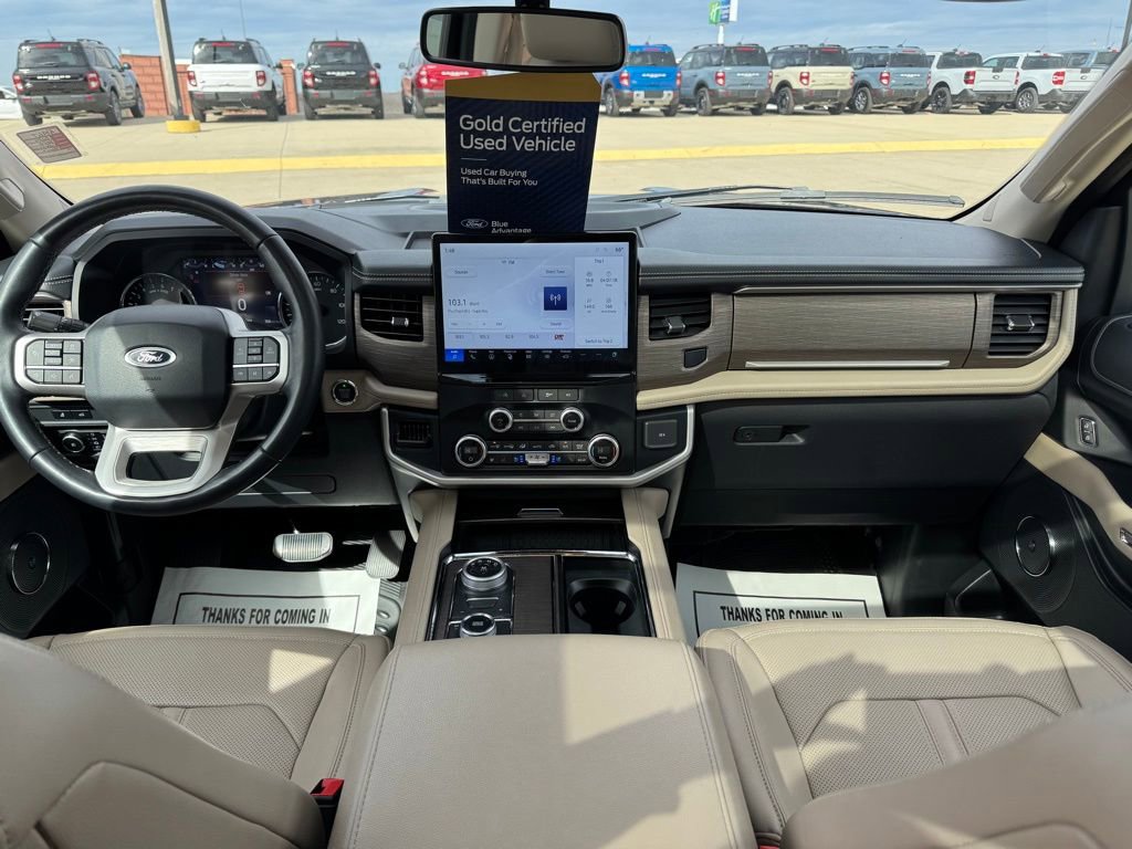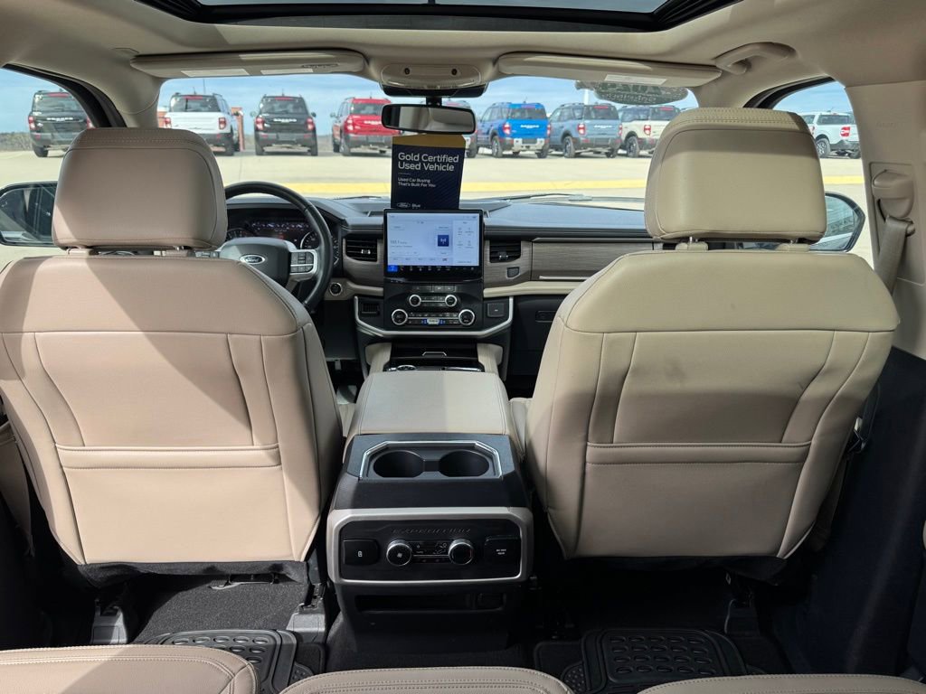 This Expedition Limited is equipped with a host of advanced technologies and premium amenities to enhance your driving experience. Enjoy the convenience of Connected Navigation, Reverse Brake Assist, and a 360-Degree Camera with Split View. The Panoramic Vista Roof and Magnetic-Painted Power Deployable Running Boards add a touch of sophistication, while the 22-inch Polished Aluminum wheels and Ebony Black Mesh Grille command attention on the road.