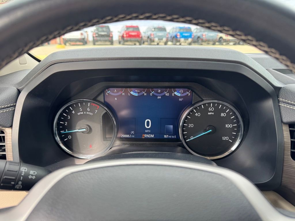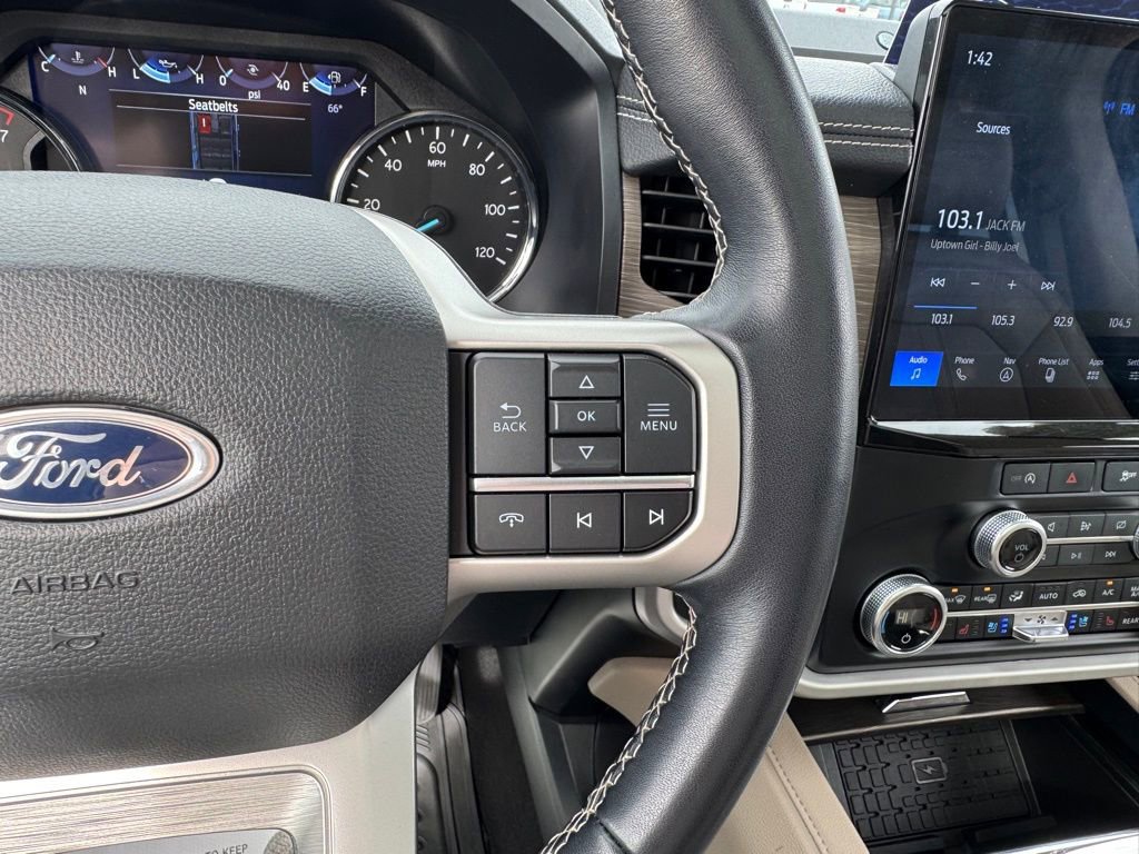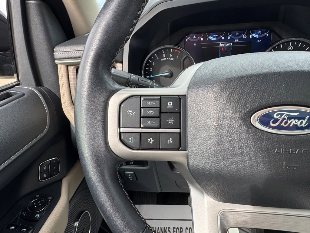 Step inside and discover the refined Ebony Black interior, complete with heated and ventilated leather front captain's chairs and a power-folding second-row bench seat. The SYNC 4 system with Enhanced Voice Recognition and the premium B&O Sound System by Bang & Olufsen will keep you entertained and connected.