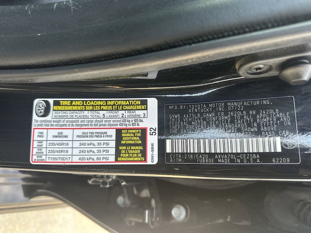 Front Wheel Drive,Power Steering,ABS,4-Wheel Disc Brakes,Brake Assist,Aluminum Wheels,Tires - Front Performance,Tires - Rear Performance,Temporary Spare Tire,Heated Mirrors,Power Mirror(s),Integrated Turn Signal Mirrors,Rear Defrost,Intermittent Wipers,Variable Speed Intermittent Wipers,Rear Spoiler,Daytime Running Lights,Automatic Headlights,LED Headlights,Automatic Highbeams,AM/FM Stereo,Satellite Radio,MP3 Capability,Bluetooth Connection,Telematics,Auxiliary Audio Input,WiFi Hotspot,Smart Device Integration,Requires Subscription,Steering Wheel Audio Controls,Power Driver Seat,Bucket Seats,Driver Adjustable Lumbar,Pass-Through Rear Seat,Rear Bench Seat,Adjustable Steering Wheel,Trip Computer,Power Windows,Leather Steering Wheel,Keyless Entry,Power Door Locks,Remote Trunk Release,Cruise Control,Adaptive Cruise Control,Climate Control,Multi-Zone A/C,A/C,Cloth Seats,Premium Synthetic Seats,Driver Vanity Mirror,Passenger Vanity Mirror,Power Windows,Power Door Locks,Trip Computer,Security System,Immobilizer,Cruise Control Steering Assist,Traction Control,Stability Control,Traction Control,Front Side Air Bag,Lane Departure Warning,Lane Keeping Assist,Lane Departure Warning,Front Collision Mitigation,Evasion Assist,Tire Pressure Monitor,Driver Air Bag,Passenger Air Bag,Front Head Air Bag,Rear Head Air Bag,Passenger Air Bag Sensor,Front Side Air Bag,Rear Side Air Bag,Knee Air Bag,Child Safety Locks,Back-Up Camera